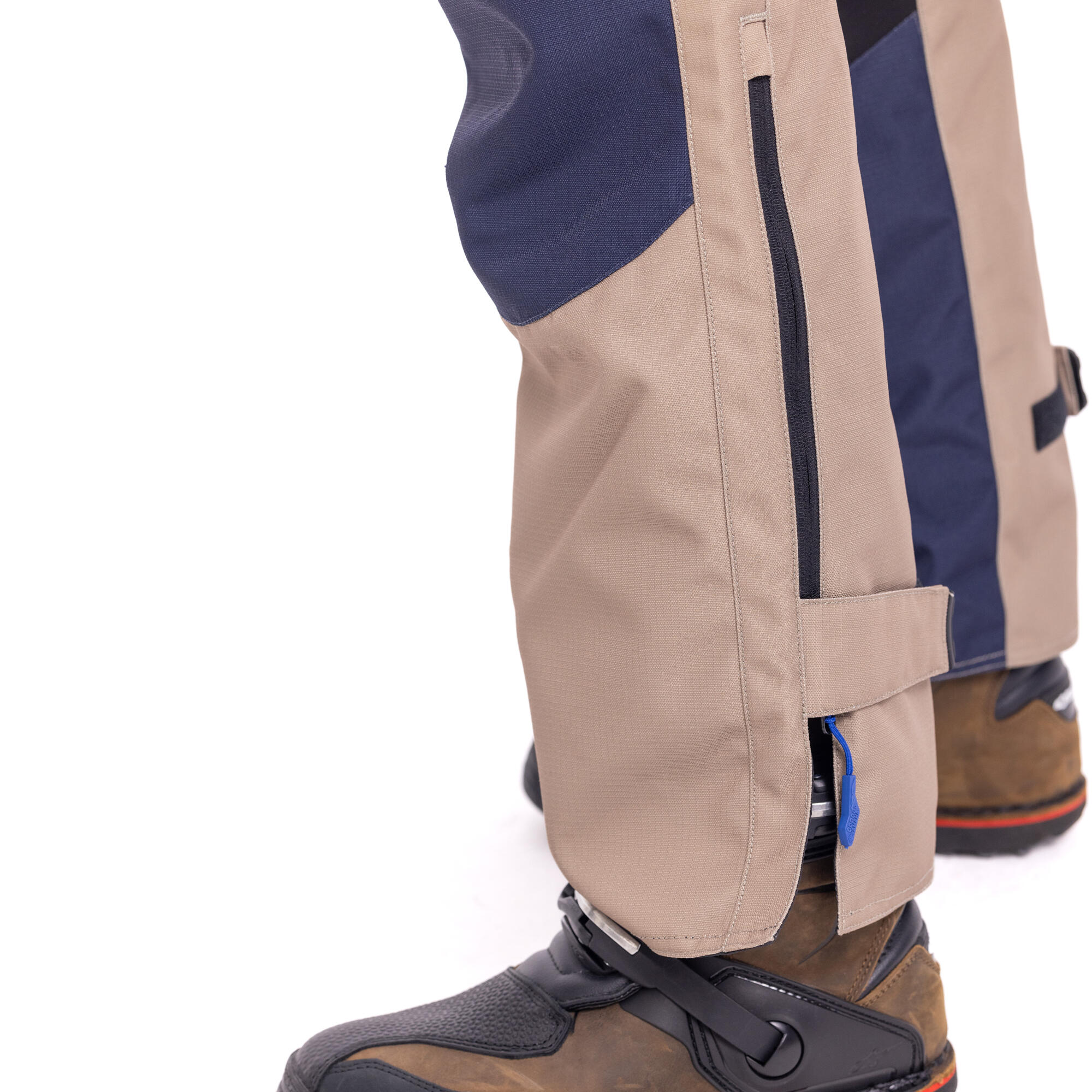 Der verstellbare Bund sowie die Beinabschlüsse ermöglichen eine individuelle Anpassung für maximalen Tragekomfort und sicheren Sitz, selbst auf unebenem Terrain. Ein praktisches Belüftungssystem mit Reißverschluss reguliert die Temperatur und verhindert Überhitzung während intensiver Fahrten. Zwei wasserdichte Cargo-Taschen bieten sicheren Stauraum für wichtige Utensilien, während ein Silikonband am Rücken für besseren Halt auf dem Sitz sorgt und ein Verrutschen der Hose verhindert.