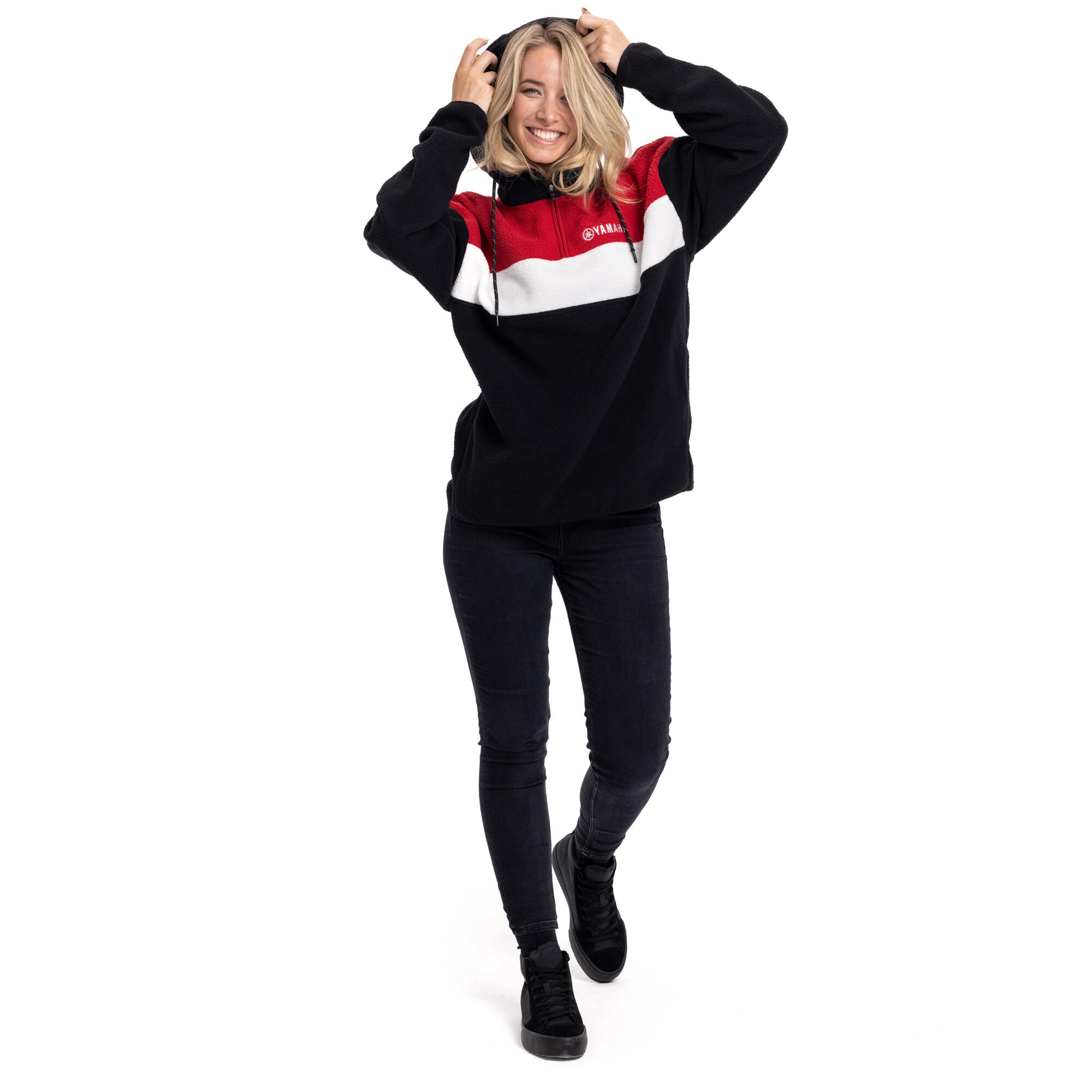 Die Polar REVS Special Edition Unisex für Erwachsene vereint modernes Design mit hoher Funktionalität und spricht damit alle Motorradliebhaber an, die Wert auf Stil und Komfort legen. Hergestellt aus 100 % Polyester mit dichtem Sherpa-Fleece, bietet diese Kapuzenjacke hervorragende Wärmeisolierung sowie ein angenehm weiches Tragegefühl, das den ganzen Tag anhält. Die dynamische Farbkombination aus Rot, Schwarz und Weiß unterstreicht den sportlichen Charakter, während das aufgestickte Yamaha-Logo auf der Brust einen authentischen Markenakzent setzt.