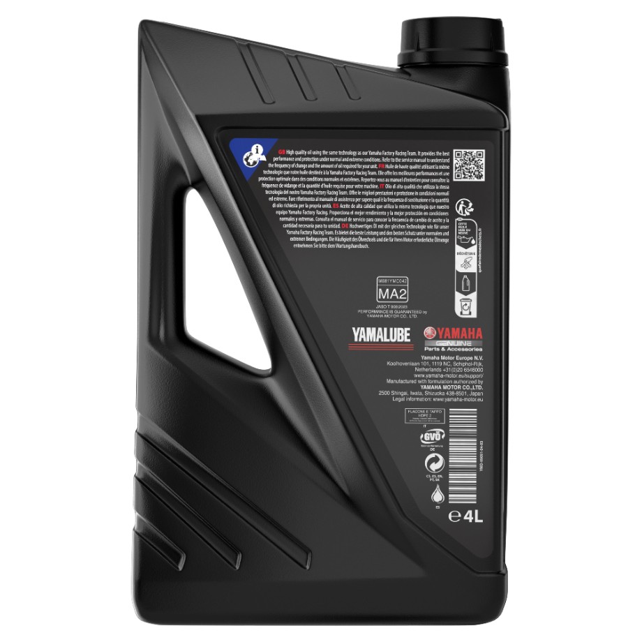 Yamalube RS4GP 10W-40 ist ein hochleistungsfähiges Motoröl, entwickelt mit der Technologie von Yamaha Factory Racing MotoGP. Es bietet maximale Leistung, sanften Motorlauf und umfassenden Schutz unter den anspruchsvollsten Straßen- und Rennbedingungen.